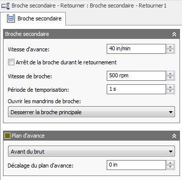 Une fois le mandrin de la contre-broche fermé, il s'agit de l'avance appliquée pour revenir vers le plan d'avance.