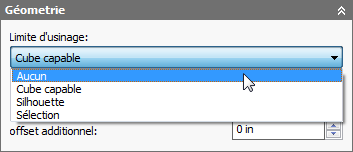 Définition de l'option Limite d'usinage sur le paramètre Aucun