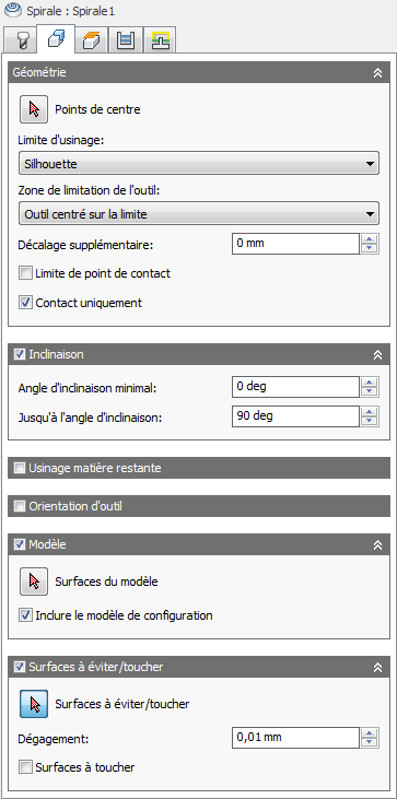 Lorsque cette option est sélectionnée, elle contient les trajectoires d'outil en fonction d'une plage d'angles spécifiés.