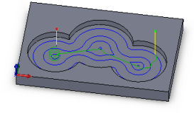 L'activation de la case à cocher Laisser outil baissé et la régénération de l'opération de la trajectoire d'outil illustrée ci-dessous produisent les résultats suivants.