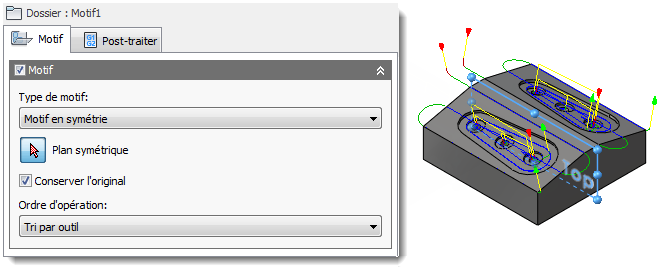 - La boîte de dialogue de l'opération Motif s'affiche. Sélectionnez Motif en symétrie dans le menu déroulant Type de motif.