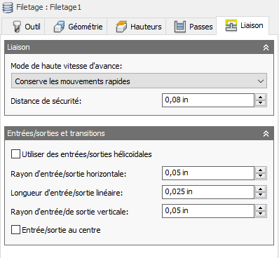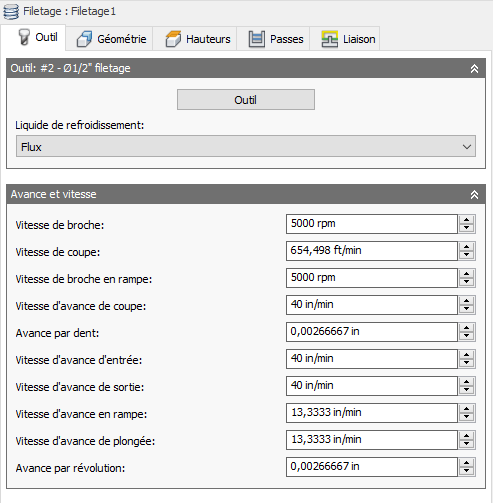 - Vitesse d'avance de sortie : avance utilisée lors de la sortie d'un mouvement de coupe.