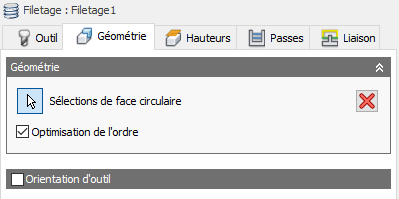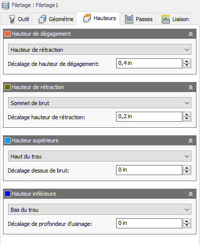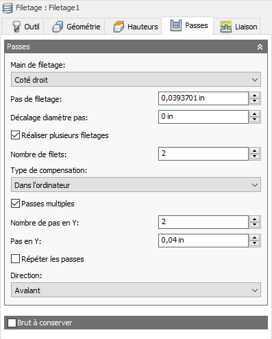 Permet d'entrer une valeur pour plusieurs coupes en profondeur lors d'une opération de filetage à la fraise.