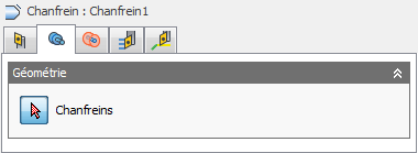 Utilisez le bouton de sélection Chanfreins pour sélectionner une ou plusieurs arêtes circulaires et créer un chanfrein.
