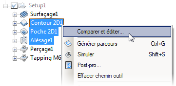 Fonction Comparer et éditer illustrée dans le menu contextuel avec plusieurs opérations sélectionnées