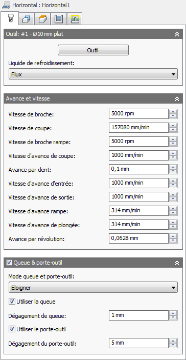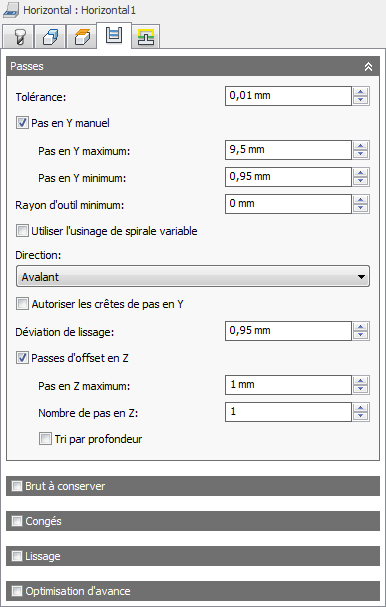 Il existe une option pour couper jusqu'à la face horizontale en plusieurs étapes, ce qui signifie que cette stratégie est une combinaison des stratégies d'ébauchage et de finition.