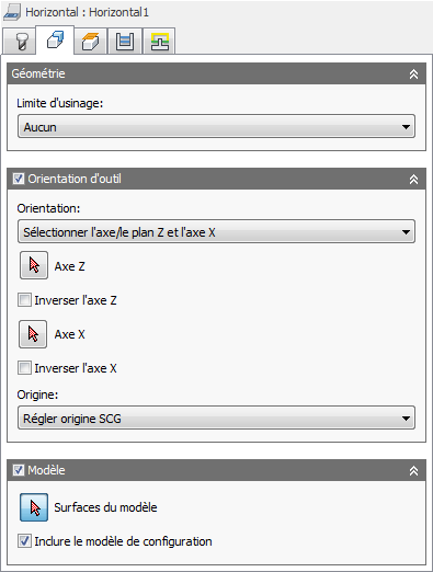 Spécifie le mode d'orientation de l'outil à l'aide d'une combinaison d'options d'origine et d'orientation du trièdre.