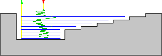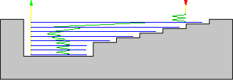Lorsque l'option Détection zones planes est activée, chaque dépassement est ajusté de manière à correspondre aux zones planes, et ce, afin que la surépaisseur axiale demandée soit équivalente à la matière restant dans ces zones.