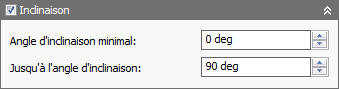 Le confinement d'angle de plongée est spécifié par les paramètres Depuis l'angle de plongée et Vers l'angle de plongée, disponibles dans la section Pente de l'onglet Géométrie.