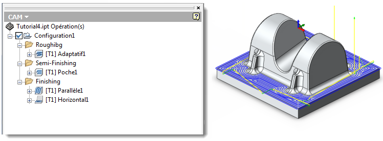 Contrairement aux configurations, les dossiers n'ont pas d'incidence sur les opérations qu'ils contiennent, mais ils sont utiles pour les regrouper. Par exemple, une pratique courante consiste à créer des dossiers distincts pour les opérations d'ébauchage, de semi-finition et de finition.