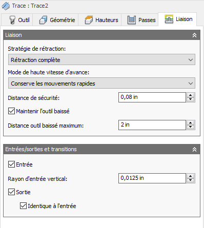 Désactivé La trajectoire d'outil est générée par égalisation des deux courbes. |
