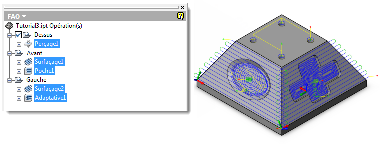 Pièce 3+2 avec une configuration pour chaque côté à usiner