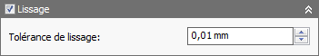 Actuellement, seuls deux paramètres permettent de contrôler le lissage. Vous pouvez activer/désactiver le lissage et définir la tolérance utilisée. Le lissage est toujours désactivé par défaut. La tolérance totale d'une opération est indiquée par la tolérance d'usinage et par la tolérance de lissage lorsque le filtre de lissage est activé. La tolérance par défaut est dérivée de la stratégie et de la tolérance d'usinage. Pour les opérations de finition, la tolérance de filtre est normalement comprise dans une plage de 50 % à 200 % par rapport à la tolérance d'usinage indiquée, où 100 % donnera probablement un bon résultat. Pour les opérations d'ébauchage, la tolérance de filtre est normalement comprise dans une plage de 5 % à 20 %, où 10 % devrait donner de bons résultats.