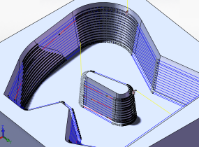 Les différentes stratégies d'usinage produisent souvent des trajectoires d'outil principalement constituées de déplacements linéaires la première trajectoire d'outil de coupe. Lorsqu'elle est activée, l'option Lissage tente de remplacer les déplacements linéaires par des arcs (G2/G3) dans un intervalle de tolérance donné. Cette fonction permet de compresser la taille de la trajectoire d'outil, d'améliorer la qualité de la pièce et de fluidifier l'exécution des machines CNC. Elle est prise en charge pour la plupart des stratégies 2D et 3D. Le processus de lissage intègre automatiquement des arcs dans tous les plans qui conviennent pour la stratégie d'usinage sélectionnée. Les arcs non pris en charge sur la commande CNC sont toujours linéarisés par le post-processeur.