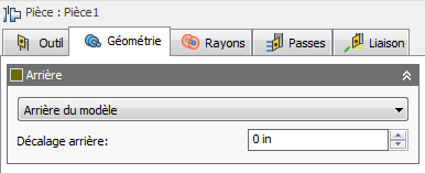 Indique la distance à usiner au-delà de l'arrière du modèle.