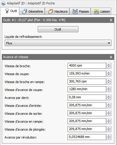 Sélectionnez le type de liquide de refroidissement employé avec la machine-outil. Tous les types ne conviennent pas à l'ensemble des post-processeurs de machines.