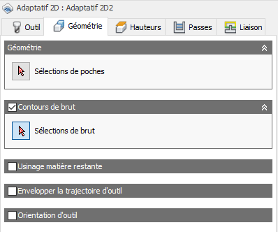 Lorsque cette option est sélectionnée, elle limite l'opération au simple enlèvement de matière qu'un outil précédent ou qu'une opération antérieure ne sont pas parvenus à réaliser.