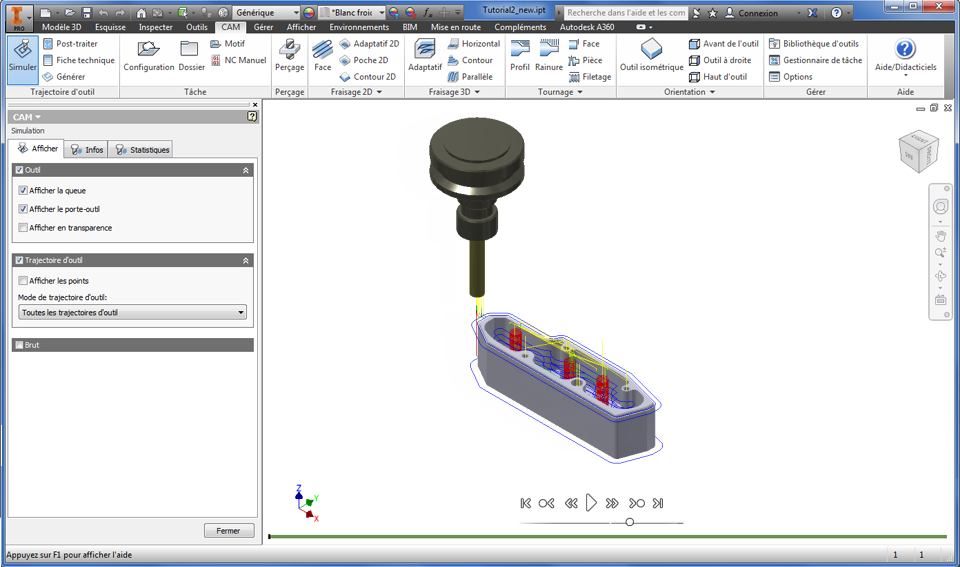 Simulation avec l'outil et la trajectoire d'outil affichés