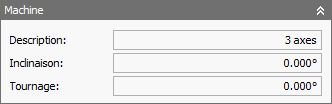 Ce groupe affiche des informations sur la machine pour laquelle la simulation est générée. Il s'avère particulièrement utile lors de l'utilisation d'une stratégie multi-axe.