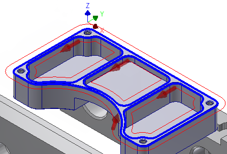 Une opération Contour 2D est utilisée une fois de plus pour créer les chanfreins nécessaires.