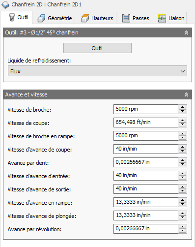 Sélectionnez le type de liquide de refroidissement employé avec la machine-outil. Tous les types ne conviennent pas à l'ensemble des post-processeurs de machines.