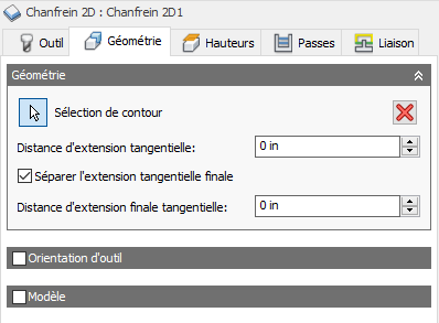Cette valeur détermine la distance à laquelle l'outil doit rester éloigné de la géométrie du modèle non chanfreinée.