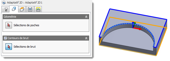 Pour usiner une poche 2D ouverte à l'aide de la stratégie adaptative 2D, suivez ces étapes :