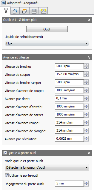 La profondeur de coupe peut correspondre, au maximum, à la longueur de dent de l'outil, et le pas latéral doit être limité à 5 % du diamètre de l'outil.