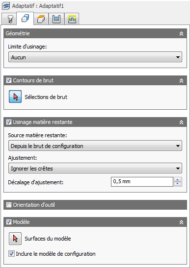 Lorsque cette option est sélectionnée, elle limite l'opération au simple enlèvement de matière qu'un outil précédent ou qu'une opération antérieure ne sont pas parvenus à réaliser.