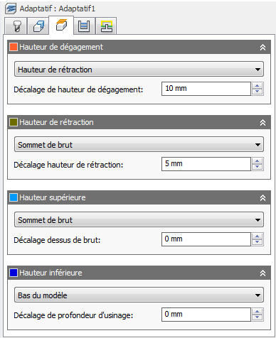 Le paramètre Décalage hauteur de rétraction est appliqué. Il est défini par rapport à la hauteur de rétraction sélectionnée dans la liste déroulante ci-dessus.