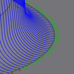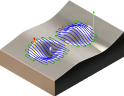 Même trajectoire d'outil, mais avec des surfaces à éviter. Les surfaces à éviter sont en bleu.