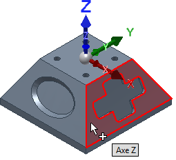 - Assurez-vous que le bouton Axe Z de l'orientation de l'outil est actif, puis sélectionnez la face inclinée, comme illustré dans l'image suivante :