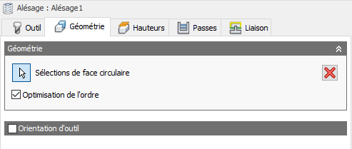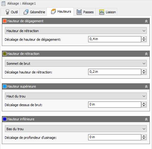 Permet d'entrer une valeur pour plusieurs coupes en profondeur lors d'une opération d'alésage à la fraise.