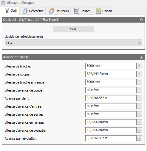Sélectionnez le type de liquide de refroidissement employé avec la machine-outil. Tous les types ne conviennent pas à l'ensemble des post-processeurs de machines.