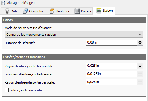 Ce paramètre est généralement défini pour éviter les collisions lors des mouvements rapides sur les machines qui effectuent des mouvements de type "déviation" en ces endroits.
