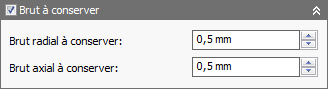 La quantité à conserver est la quantité de matière qui doit rester sur la pièce après usinage. Notez qu'il est possible que davantage de matière reste sur la pièce en raison de nombreux autres paramètres. Par exemple, ce peut être le cas dans les poches dans lesquelles l'outil utilisé ne rentre pas ou lorsque des paramètres de chargement de rampes empêchent l'outil d'entrer dans les poches.