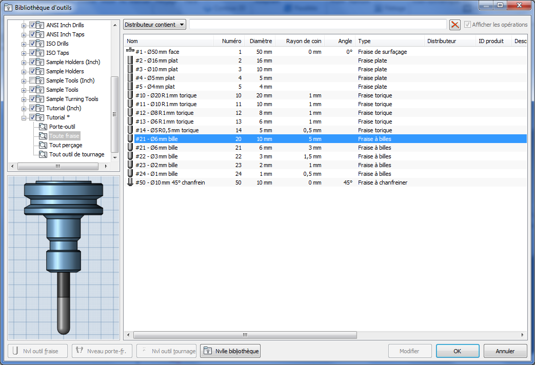 La bibliothèque d'outils vous permet de gérer des outils pour vos documents et opérations, ainsi que des bibliothèques d'outils prédéfinis.