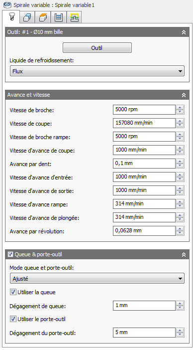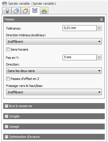 ... une stratégie Spirale variable fournit une trajectoire d'outil plus lisse évitant les marques visibles.