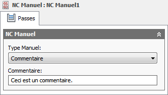 Sélectionnez ensuite NC Manuel dans le menu, puis sélectionnez le type d'entrée NC approprié dans le menu déroulant Type Manuel.