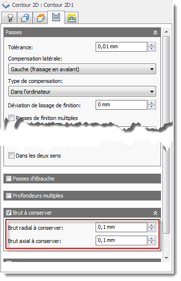 Pour créer le chanfrein, il suffit de créer une opération Contour 2D et de s'assurer de la sélection d'une fraise boule/torique.