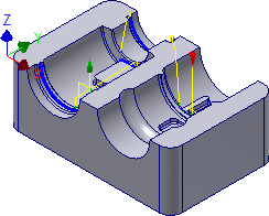 La pièce est à présent finie dans les tolérances spécifiées dans les diverses opérations, et le brut unique restant est celui qui se trouve entre les dépassements des diverses trajectoires d'outil. Pour obtenir une finition encore meilleure, modifiez les opérations et utilisez une tolérance plus élevée et des pas plus petits dans la trajectoire d'outil.