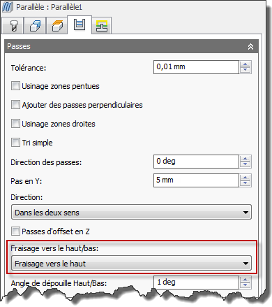Contrôle du fraisage vers le haut/bas