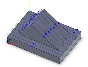 Le paramètre par défaut est Sans effet, ce qui signifie qu'Inventor CAM procède à la fois au fraisage vers le haut et vers le bas. Il s'agit de l'approche la plus efficace, car elle permet de minimiser le temps de liaison et d'usinage.