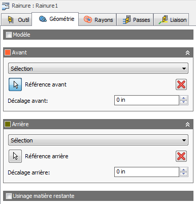 Pour les opérations de finition, il est fréquent de définir la valeur par défaut sur 0 mm/0 po, ce qui signifie qu'aucune quantité de matière n'est conservée.