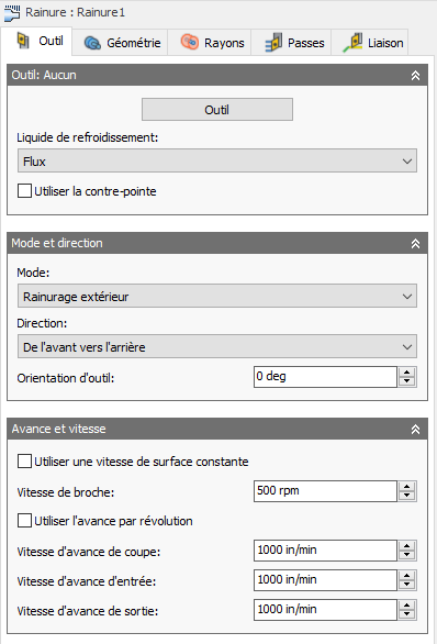 Passe de finition activée. Passe d'ébauche désactivée. |