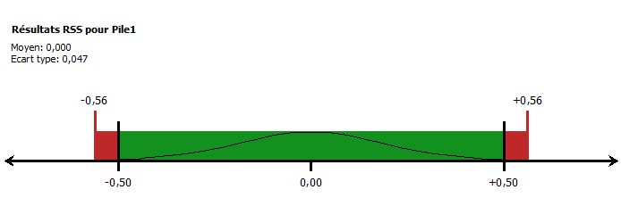 Le graphique des résultats RSS affiche la moyenne calculée et les paramètres d'écart type pour le composant RSS au-dessus du graphique. Il affiche également une courbe normale qui indique la nature statistique de l'analyse.