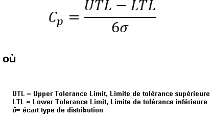 L'écart type calculé pour la distribution normale de chaque cote est calculé d'après la formule suivante pour la capacité des processus :