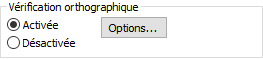 - Cliquez sur Options pour ouvrir la boîte de dialogue Options de vérification orthographique.
