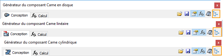 - Dans la zone Came, choisissez le type de came à insérer (Composant, Aucun modèle).