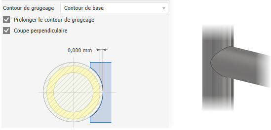 - Cochez l'option Coupe perpendiculaire, si possible, pour créer des intersections précises, comme un grugeage au laser pour une canalisation.